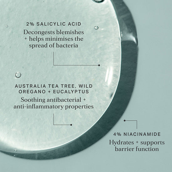 A combination of antiseptic Wild Oregano, anti-bacterial Eucalyptus, Tea Tree and 2% pore-clearing Salicylic Acid help to reduce excess sebum and acne causing bacteria while Zinc, Licorice and Vitamin B3 work to soothe and may help prevent further blemishes. The perfect spot treatment for oily, blemish-prone skin.