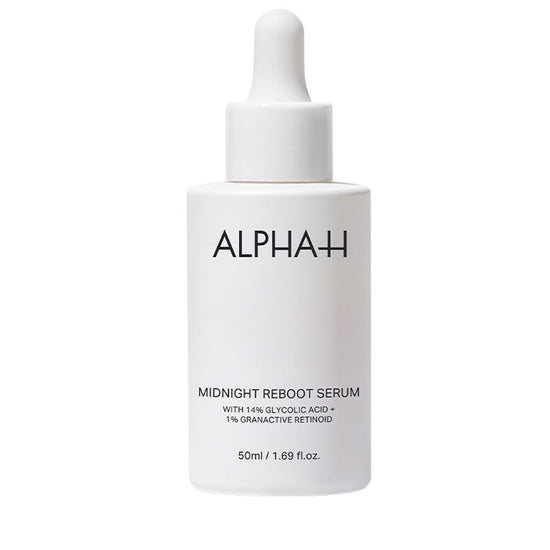 Reveal clear, radiant and resilient skin with the latest skin technology from Alpha-H. Midnight Reboot Serum's unprecedented formula combines two of skincare's most efficacious ingredients—14% Glycolic Acid and 1% Granactive Retinoid to help resurface and stimulate the skin's renewal processes and collagen production. Once considered too active to be formulated together, this precision blend manages maximum exfoliation with minimum downtime in one uniquely potent yet gentle step. Perfect for those concerned with signs of ageing, this advanced serum helps to improve skin tone, luminosity, firmness, fine lines, wrinkles and elasticity in as little as 6 weeks.