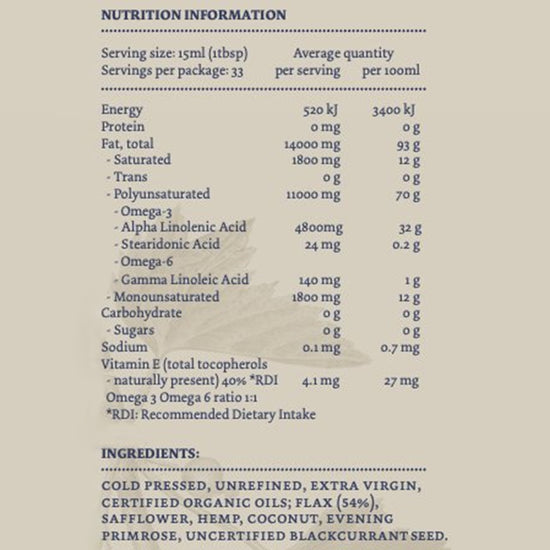 Beauty Plus Oil is formulated from a nourishing blend of unrefined, extra virgin seed oils cold pressed from flax, safflower, hemp, evening primrose and blackcurrant. This mix of essential fatty acids helps to support your body, nourishing it from the inside, out. Beauty Plus Oil is ideal for those wishing to clear existing processing blockages within the body, and to address essential fatty acid deficiency. After using up a bottle, you can then move onto Bestow Beauty Oil. It is fine to remain on Beauty Oil Plus however as some may prefer the milder, more fruity taste.