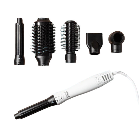 Create effortless salon-worthy styles with ease with the BondiBoost Everlast Airstyler; a multi-use air styler with aloe-infused ceramic attachments that lock your style in place while adding shine, reducing frizz and damage.