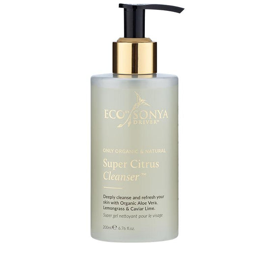 Discover the Eco By Sonya Driver Super Citrus Cleanser. This organic Aloe Vera based cleanser and make-up remover gently removes daily impurities and pollutants for a fresh, clear complexion. The Aloe Vera base ensures the skin isn't left with a post-cleanse dry tightness. Whereas rich in antioxidants and natural AHA's, Australian Caviar Lime gently exfoliates for soft smooth skin and Lemon Grass protects the skin with natural anti-bacterial properties for a refreshed and even glow. Suitable for all skin types.