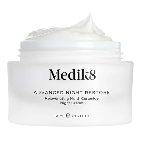 This Medik8 night cream actively boosts skins hydration levels, whilst helping to combat signs of ageing while you rest thanks to potent antioxidants. Enriched with Squalane, Ceramides and beneficial Antioxidants, this moisturiser reveals visibly more youthful skin. Designed to be used after Vitamin A application, this potent anti-ageing hydrator enhances the efficiency of the Vitamin A for optimal results. This cream will leave the skin feeling soft and nourished as well as improving the elasticity of the skin.